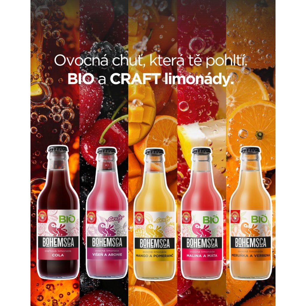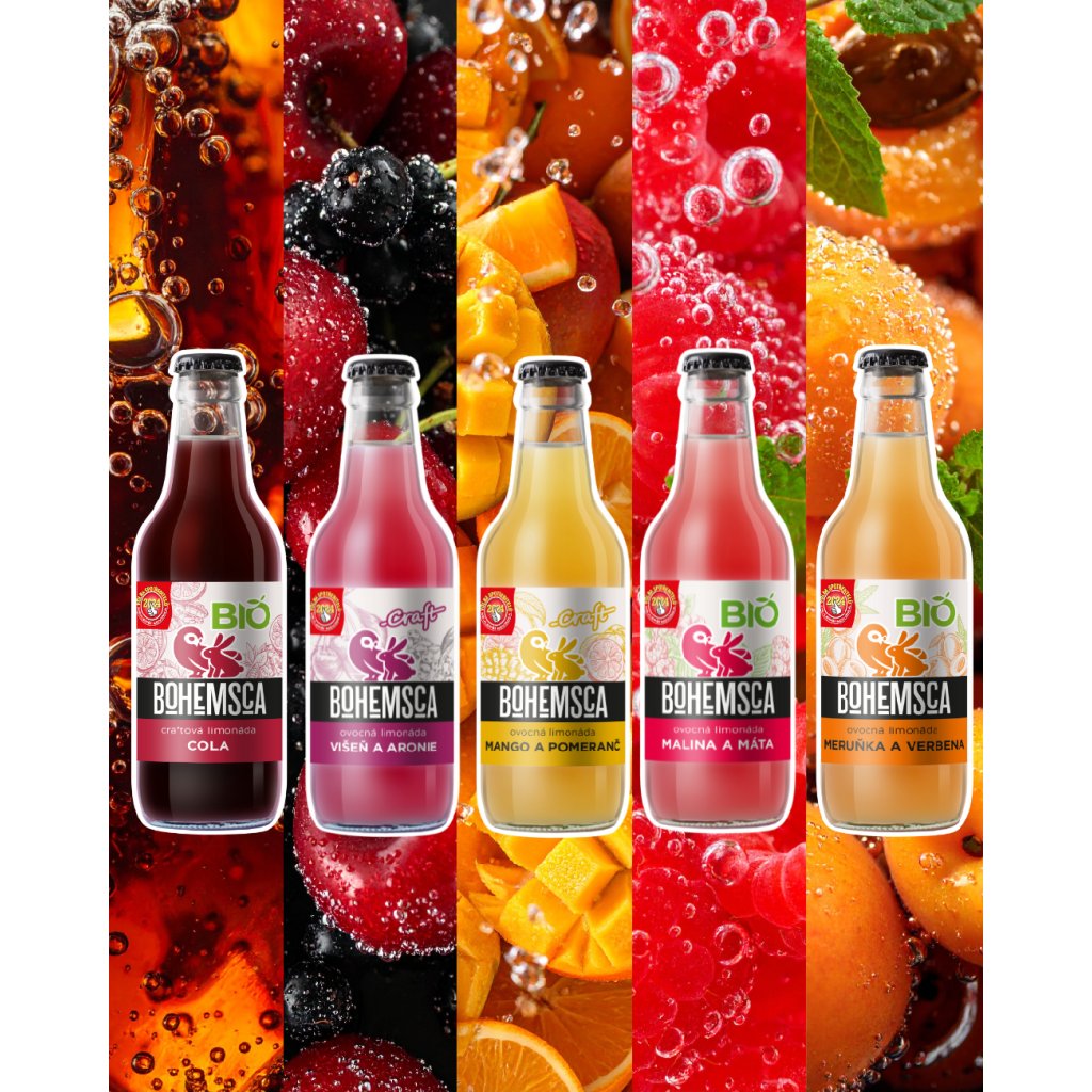 Namíchali jsme karton těch neoblíbenějších příchutí BOHEMSCA limonád z řad BIO a CRAFT. Pro ještě lepší osvěžení.