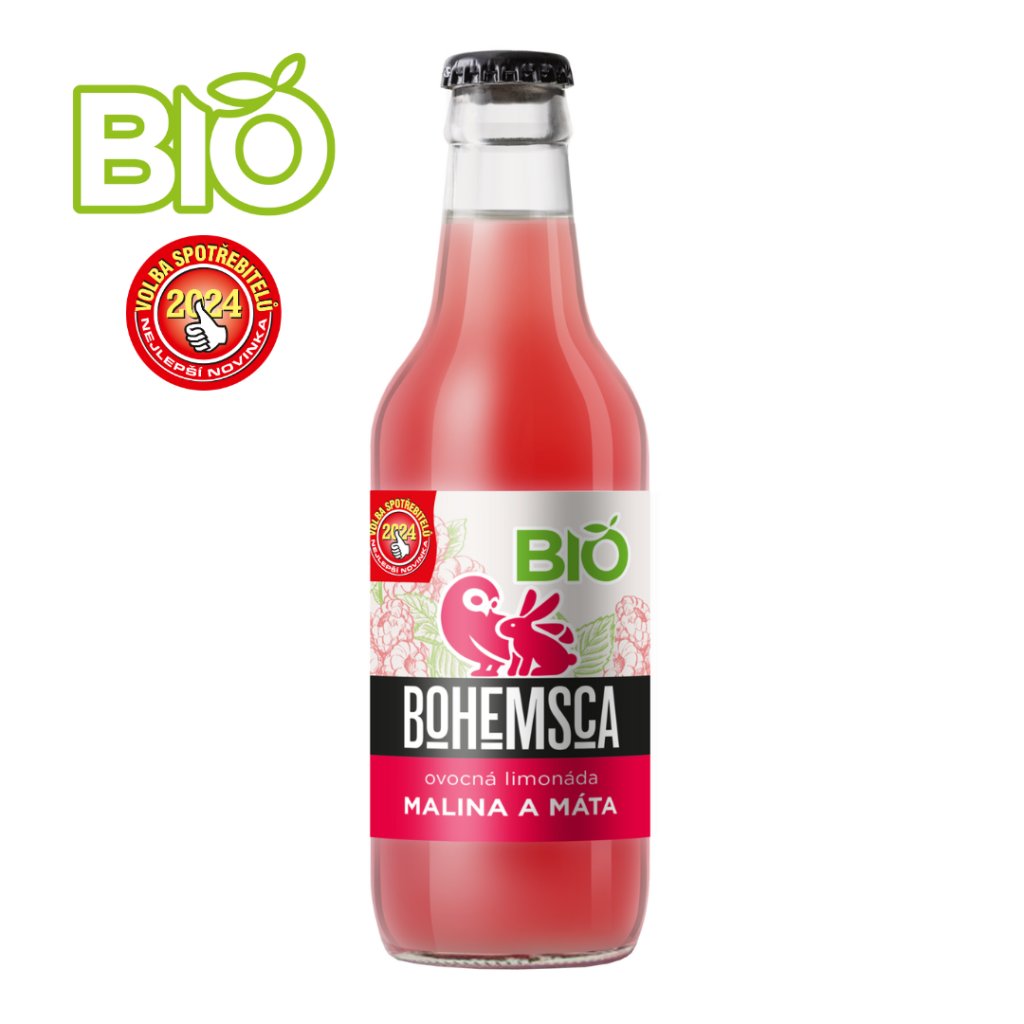 BIO limonáda MALINA a MÁTA 330 ml - 15 ks