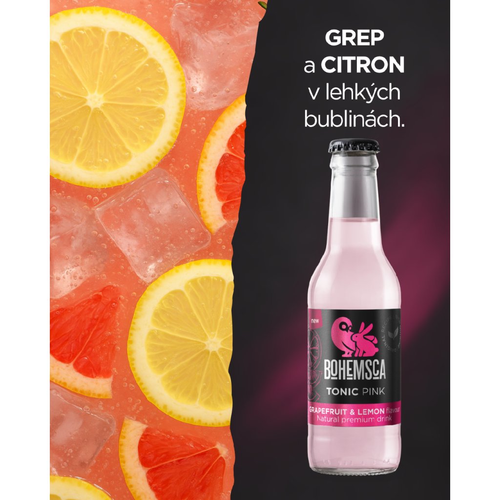 Svěží velmi žádaná novinka, růžový tonik, oblíbený pro svou vyváženou jemně ovocně-hořkou chuť, obsahuje chinin a přírodní šťávu z grapefruitu chutná skvěle s ginem i vodkou. Přidejte do svého oblíbené koktejlu čerstvé maliny či plátek pomeranče a vychutnejte si své chvíle pro pohodu a relax.